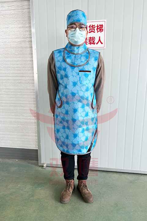 在進行放射性診療檢查時,要檢查X射線防護服附屬部件是否齊全,是否符合自己所需的鉛當量,然后再進行操作。
